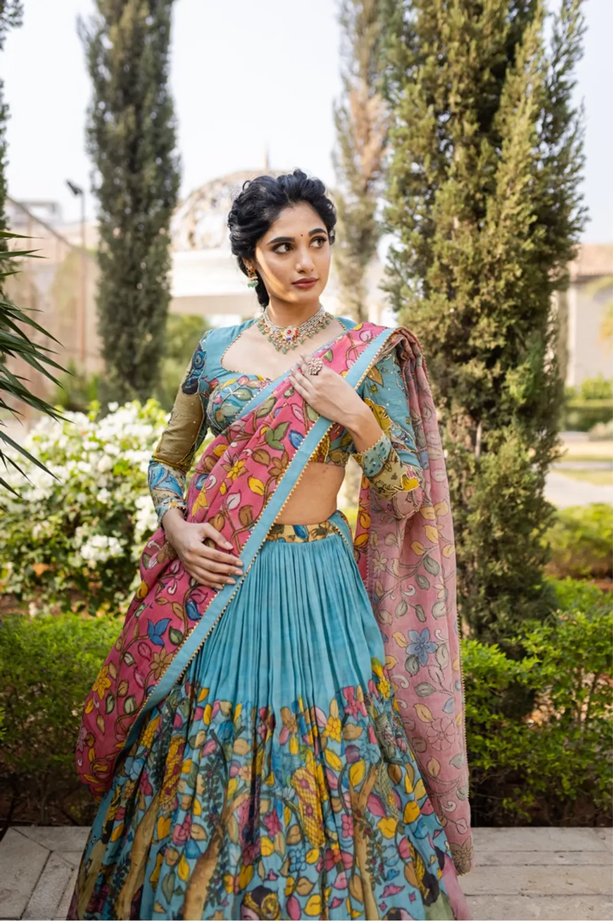 Elevate your ethnic wardrobe with our stunning Kalamkari Printed Lehenga Choli, designed for elegance and comfort. Perfect for festive occasions, weddings, or special celebrations!