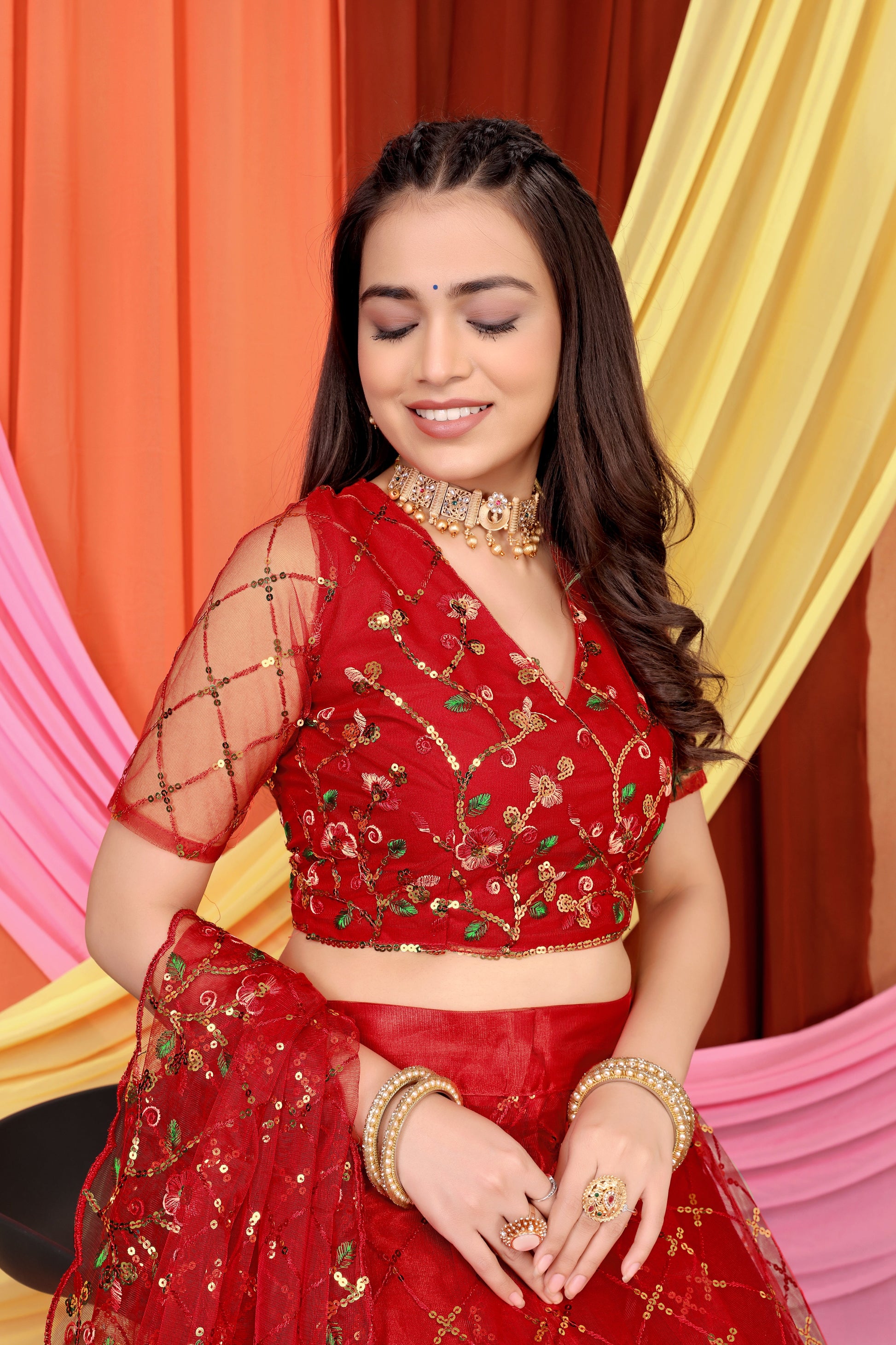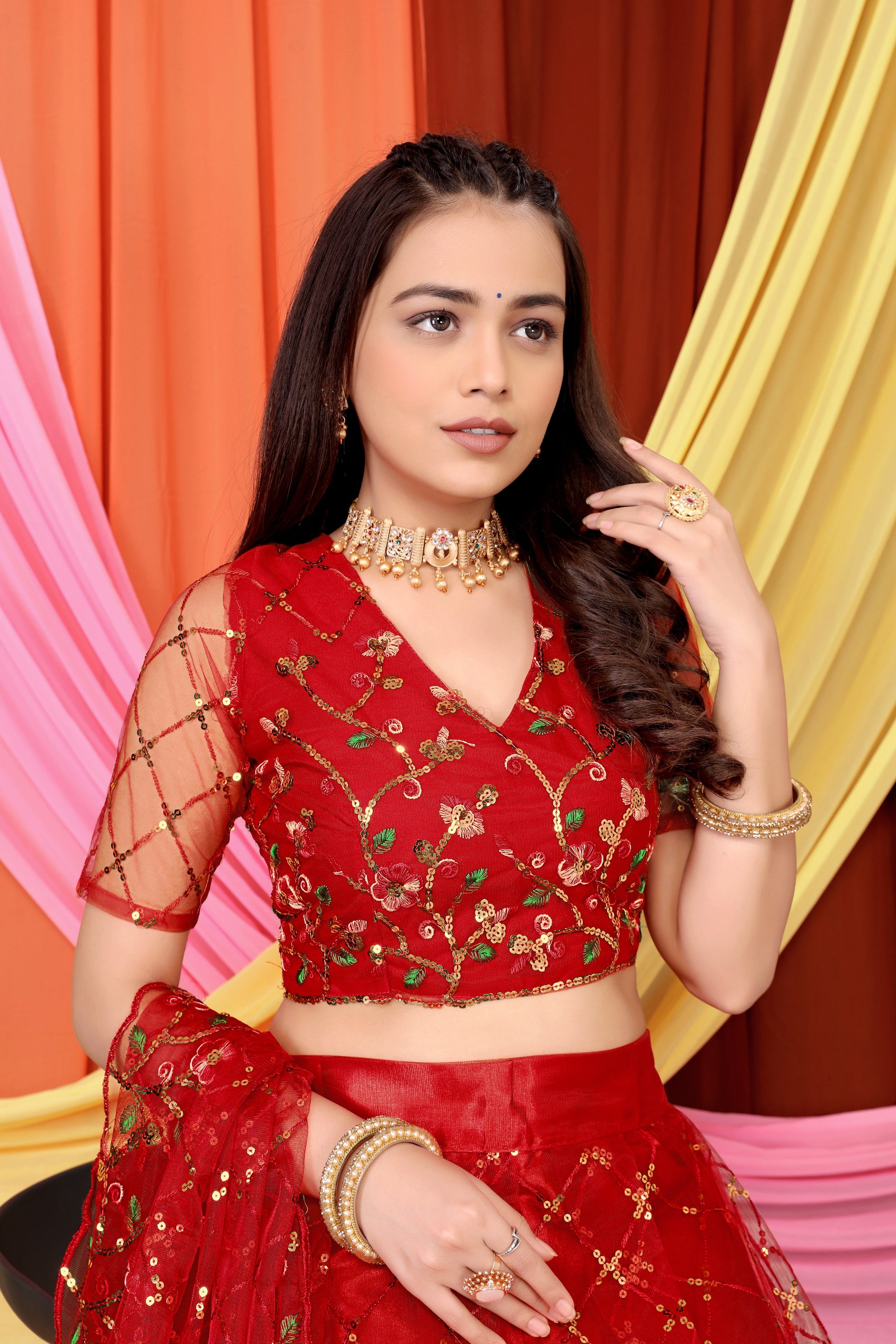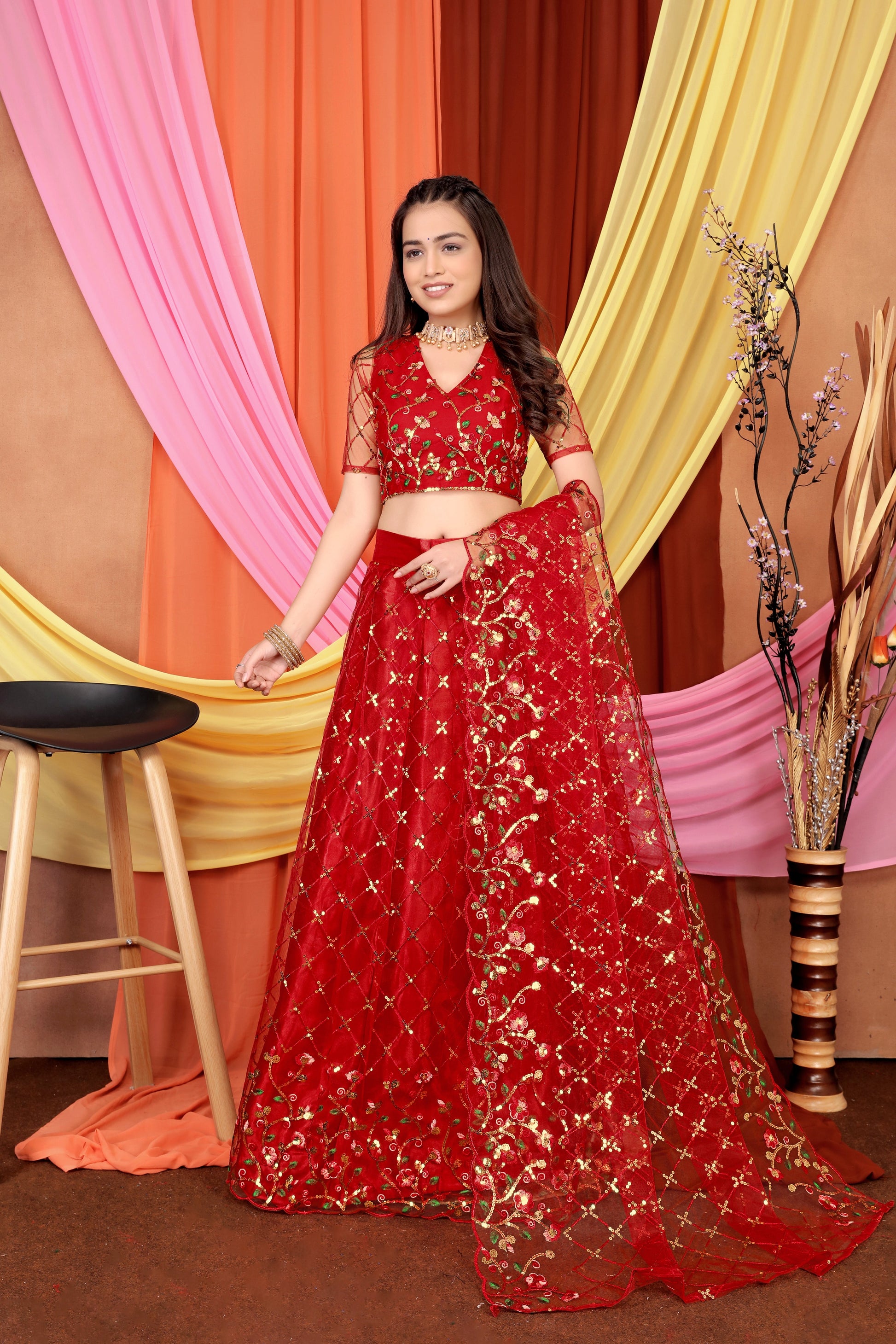 New Party Wear Sequance Lehenga Choli Full Heavy & Fancy Color Full Sequence Work In Lehenga Choli With Beautiful Sequance Worked Blouse {unstitched}. It is made of Net and Satan Material . ✔ The Lehenga Waist Size is 44 Inch And Lehenga Length Size is 44 Inch. Duppatta Length Size is 2.5 meter. Lehenga with Sequence Work 0.80 meter Blouse piece. ★Lehenga Work Type : - 5mm Fency Color Full Sequence Work.✔ ★ Lehenga with Blouse Piece :- Beautiful Sequance Worked One of the most graceful costumes made from unstitched.fabric-the Lehenga the much loved choice for most Indian women can be worn in so many different ways. A Traditional Indian Wear Also Known As Chaniya Choli or Ghagra Choli for Women. This Lehenga Bear A Sophisticated Look And Enhance The Beauty Of The Women Which Can Be Worn For Functions, Festivals, Parties And Even Wedding Also. You Will Be A Center of Attraction In The Event Once You Ware It. This Lehenga Choli Is Comes With Un Stitched Material So It Can Be Stitched According To Your Taste, Preference And Style Also.