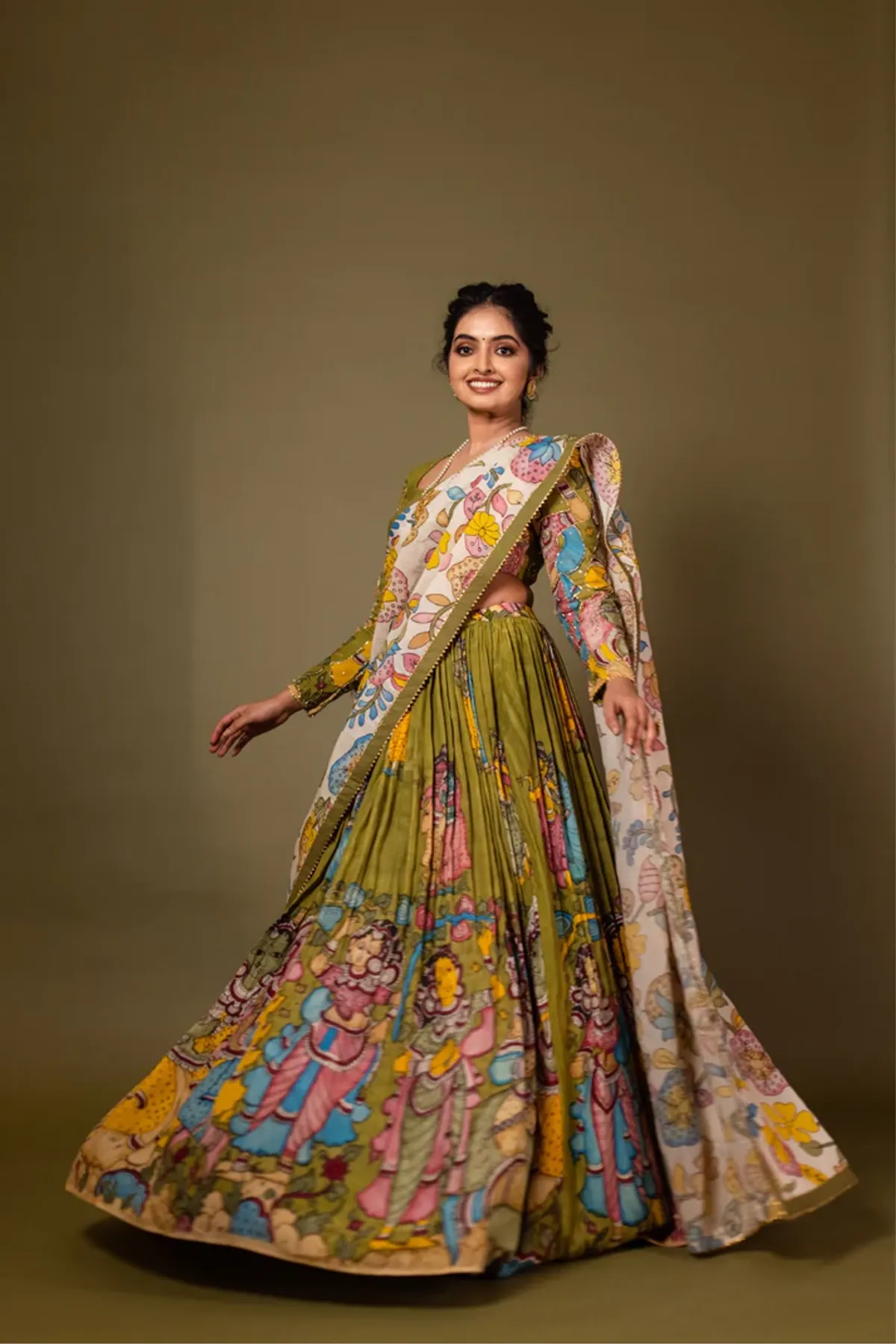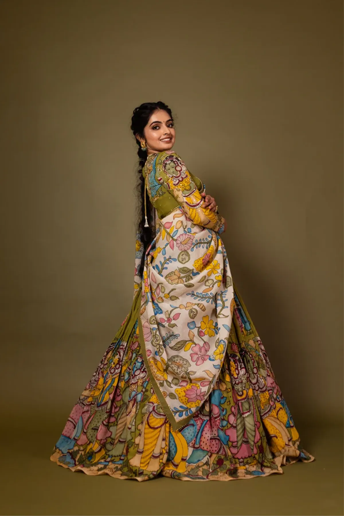 Exquisite Kalamkari Lehenga in Rich Multicolor Design – Perfect for Cultural & Festive Events